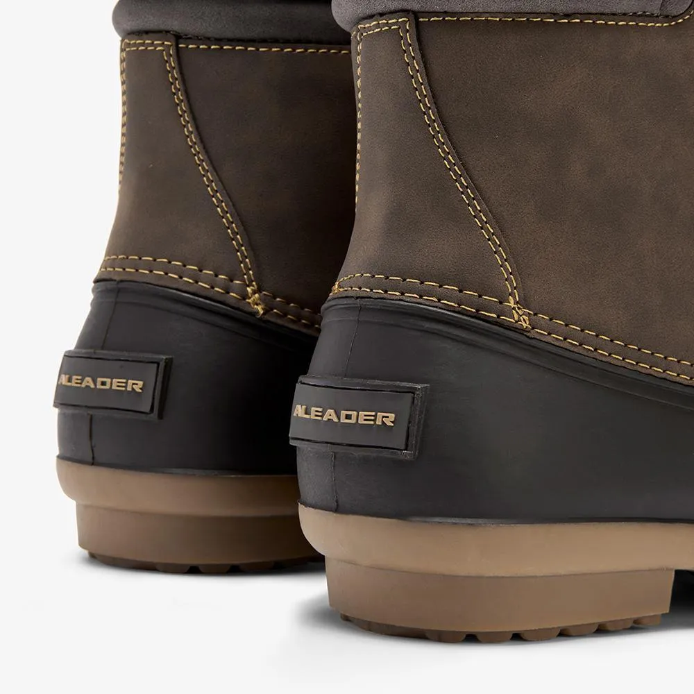 Face the winter season head-on with Aleader Men's Duck Boots in Brown/Tan. These boots fuse style, comfort, and functionality, designed for men who seek adventure despite the chilling weather.