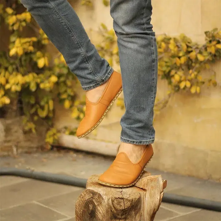 Discover the allure of our Men's Barefoot Grounding Shoes Matte Cocunat, where vibrant aesthetics meet ergonomic design. Crafted for the modern man, these orange leather slip-ons feature a wide toe box and minimalist grounding technology for superior foot health. The striking orange hue makes a bold statement in both formal and casual settings, while promoting natural foot movement and posture for all-day comfort. Each pair reflects our commitment to exceptional craftsmanship and quality.
