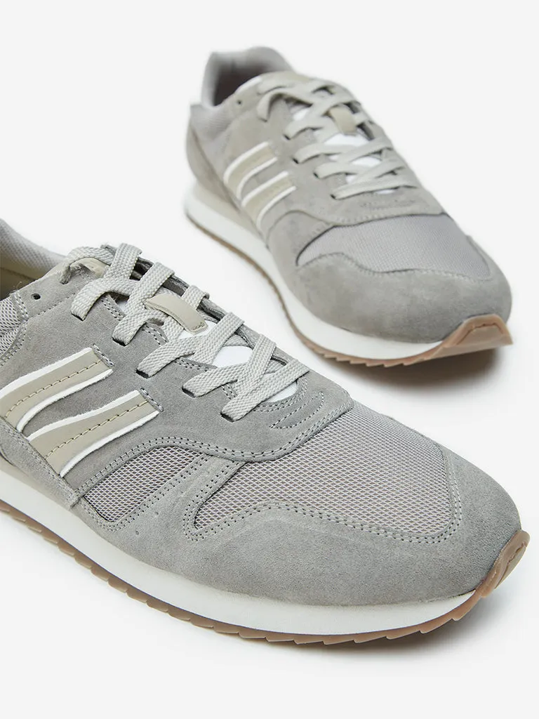 These grey sneakers from Soleplay are designed with a mesh-detailed upper. Built from durable materials, they come fitted with a cushioned footbed, sturdy midsole, lace-up style and ridged outsoles.