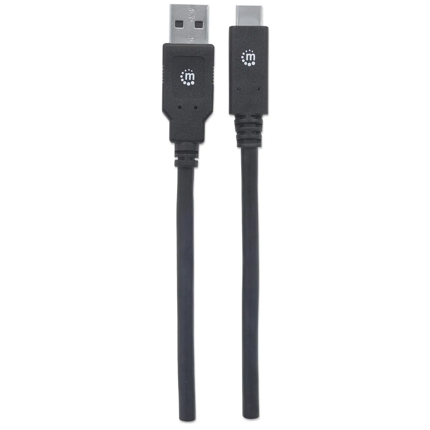 Manhattan SuperSpeed USB Type-C Cables easily connect USB Type-A peripherals and accessories to Type-C device ports. Ideal for use with any USB Type-A plug-and-play device, these cables support data transfer rates of up to 5 Gbps on Windows and Mac systems for fast, reliable transmissions and current of up to 3 amps. Nickel-plated contacts, shielding and fully molded boots with strain relief help provide dependable connections, maximum conductivity and minimal data loss with reduced EMI interference.