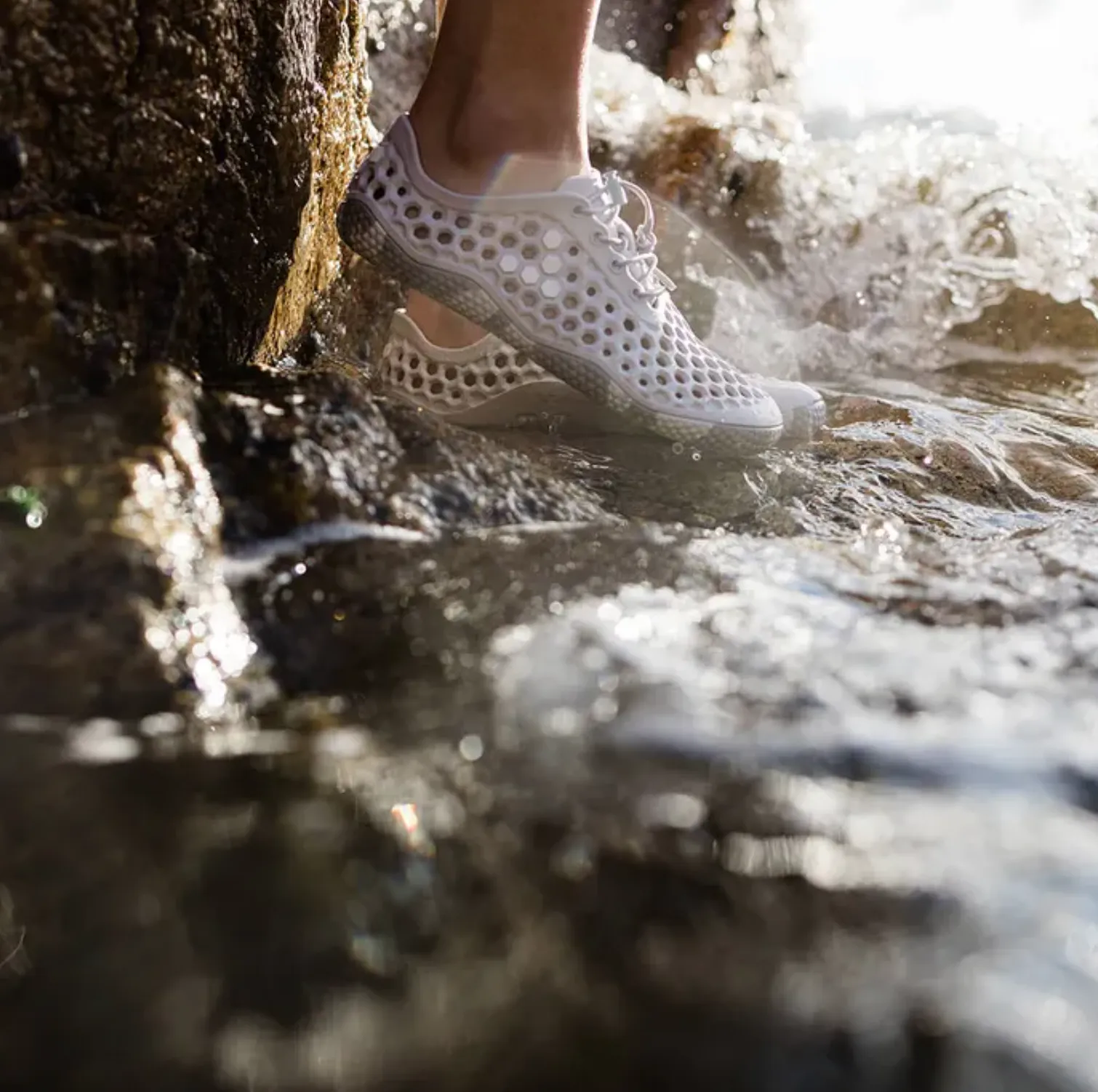 TheVivobarefoot -Ultra III Bloom is for barefoot adventure-seekers who want to get fully immersed in nature. With an open-honeycomb design made using Bloom foam (made from 10% algae biomass), these amphibious shoes let you explore in and out of the water with grip, flexibility and full barefoot feeling.